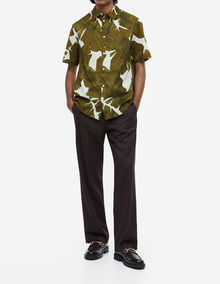 เสื้อเชิ้ตผู้ชายลำลองเนื้อผ้านุ่มเบา สีพื้น คอตั้ง ผลิตจากผ้าฝ้ายที่เป็นมิตรต่อสิ่งแวดล้อม