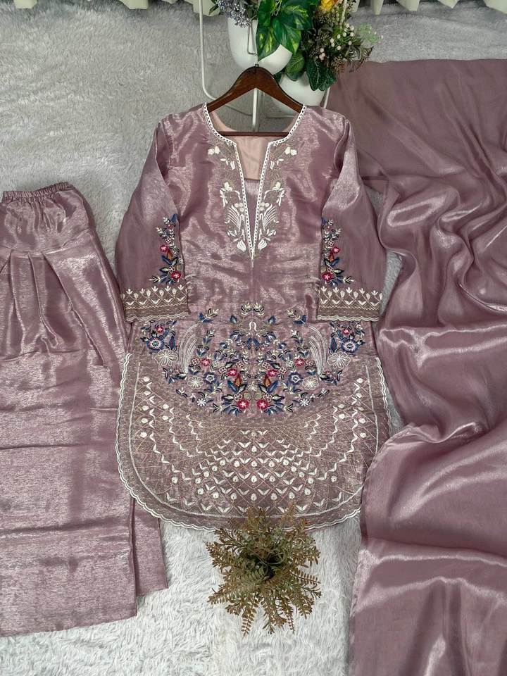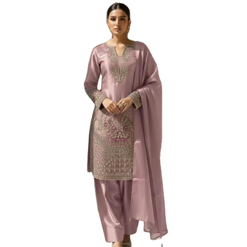 ชุดคุर्ติและกางเกงขายาวปักลายสวยงาม ดีไซน์ทันสมัย เนื้อผ้านุ่มหรูหรา คอวี ความยาวระดับเข่า พร้อมผ้าคลุมไหล่ สำหรับเพื่อนเจ้าสาว