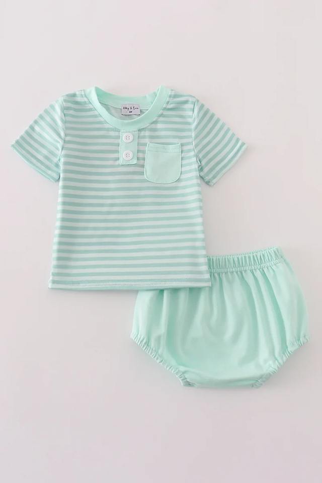 ชุดเสื้อผ้าเด็กอ่อนลายทางสีมิ้นท์สวมใส่สบาย