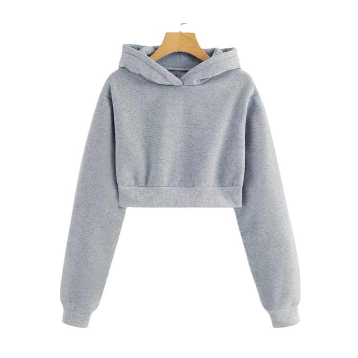 เสื้อฮู้ดครอปสำหรับผู้หญิง ผ้าเนื้อนุ่ม ใส่สบาย แขนยาว สไตล์ลำลอง สามารถปรับแต่งด้านหน้าได้ เหมาะสำหรับใส่ในชีวิตประจำวัน ขายส่ง
