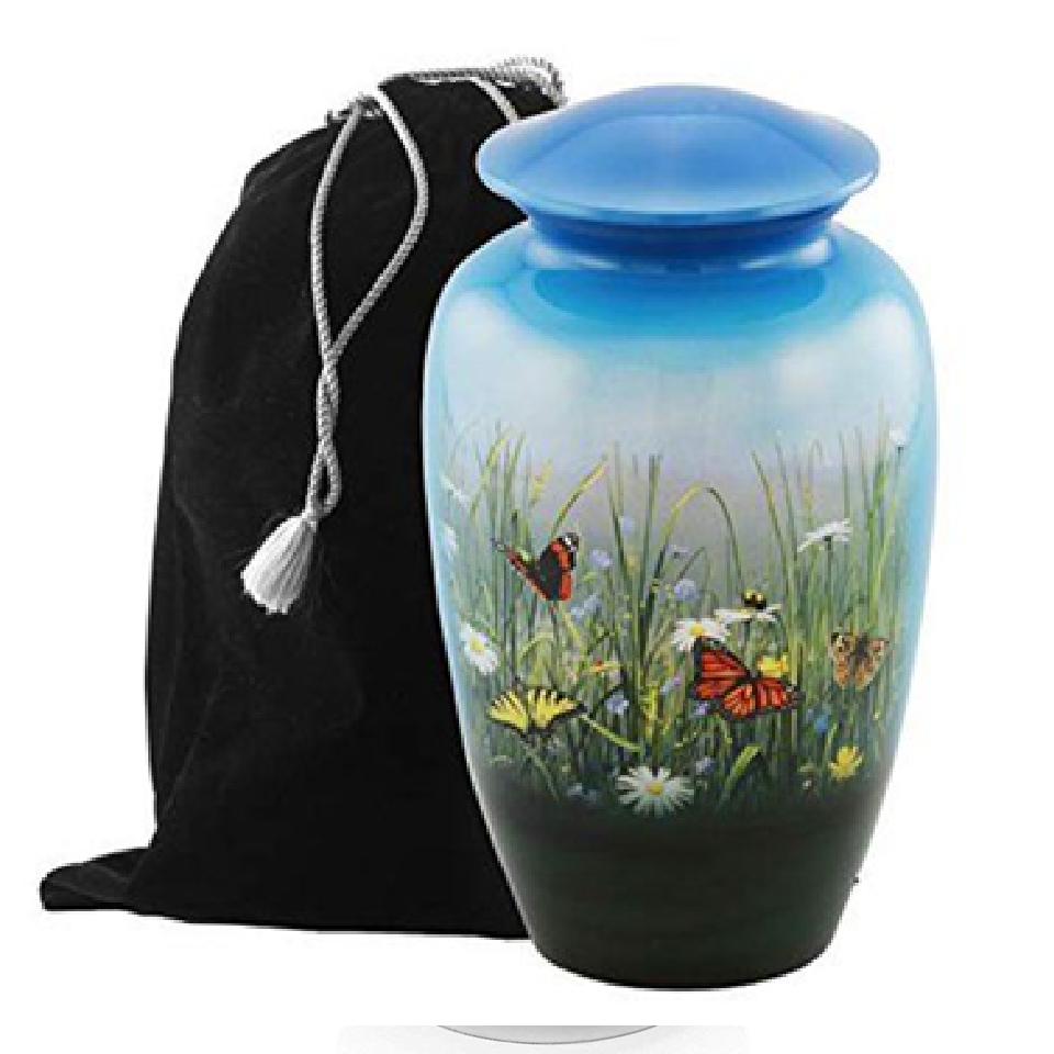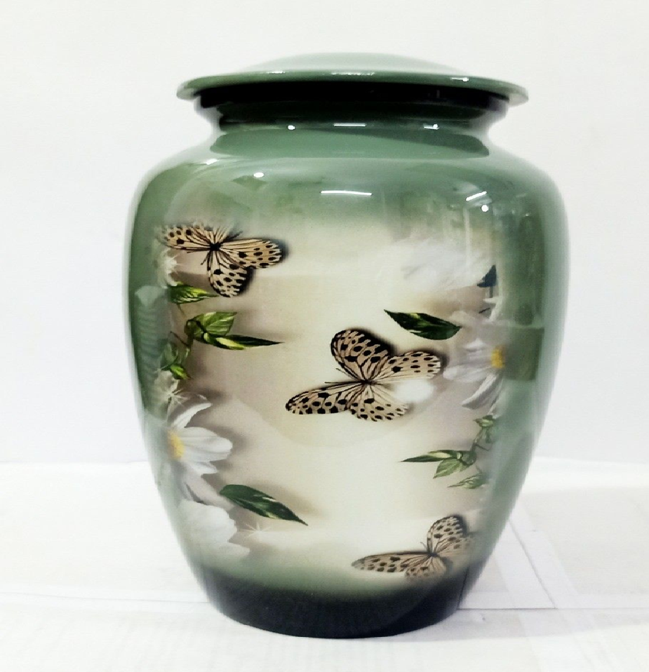 แจกันสีเขียวเซจอ่อนประดับด้วยผีเสื้อและดอกไม้ที่สวยงาม การแสดงความเคารพที่อ่อนโยนและน่ารัก มีจำหน่ายในราคาขายส่ง