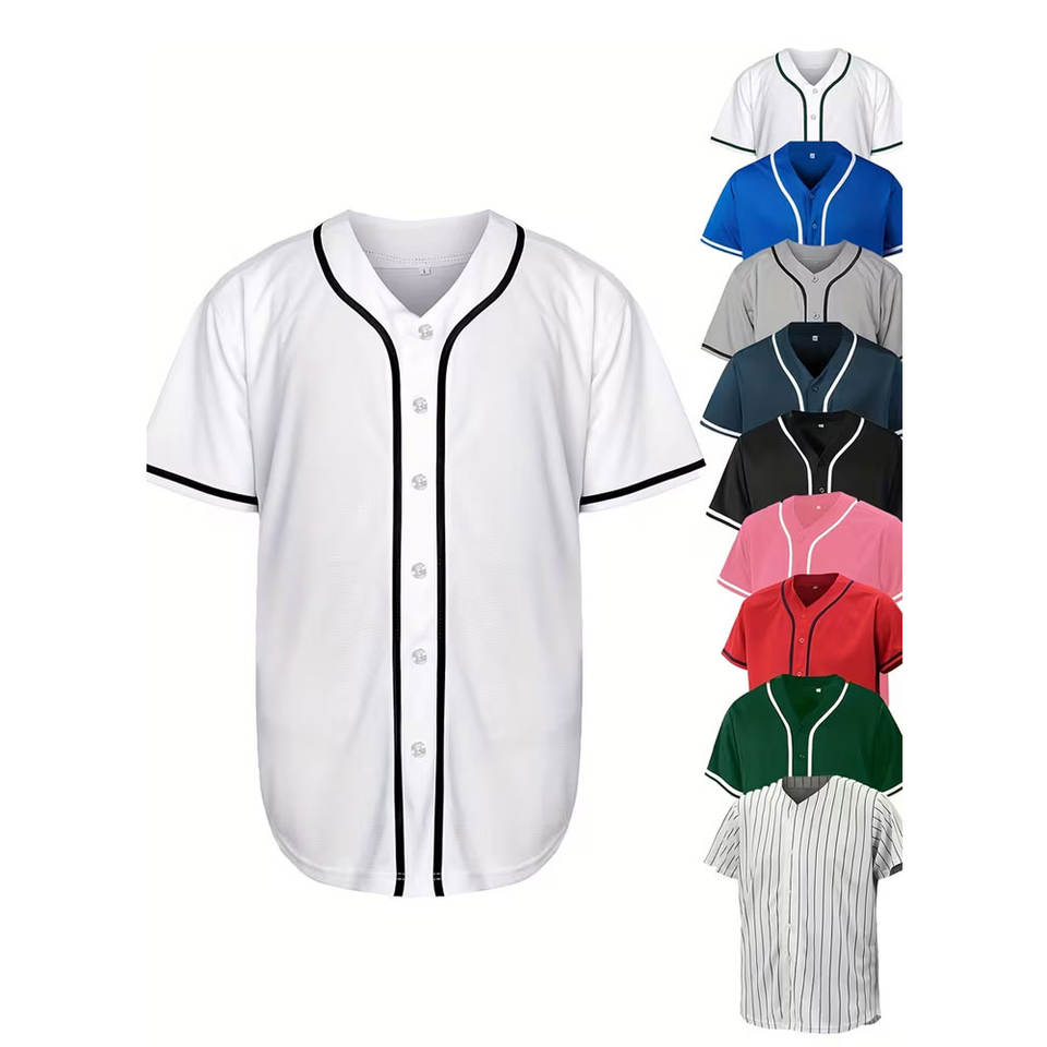 เสื้อซอฟต์บอลลำลองแบบมีกระดุม แขนสั้นสำหรับผู้ชาย ดีไซน์สีสันตัดกัน โดดเด่นไม่เหมือนใคร คุณภาพดีเยี่ยม