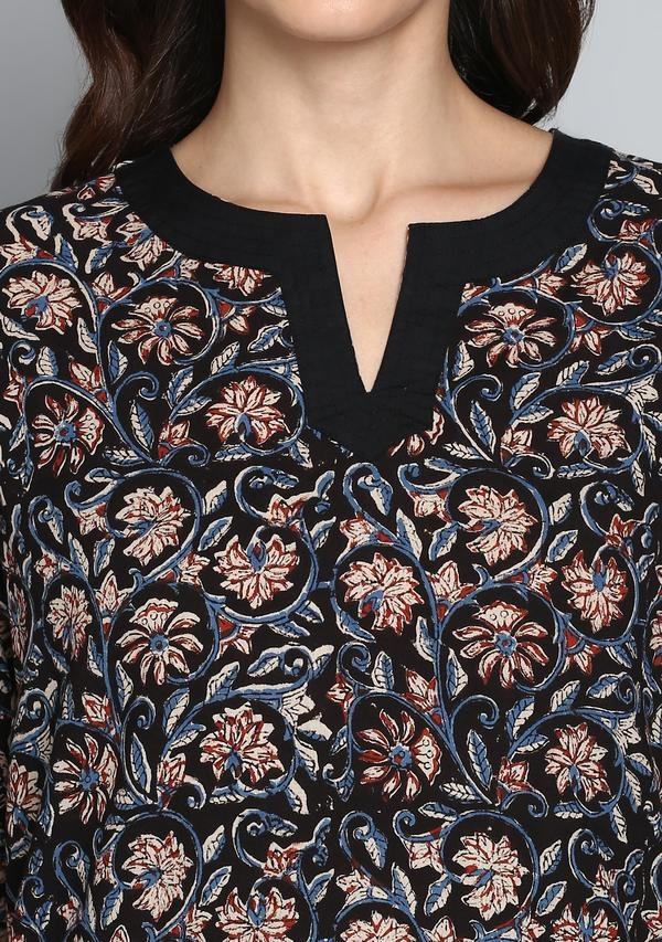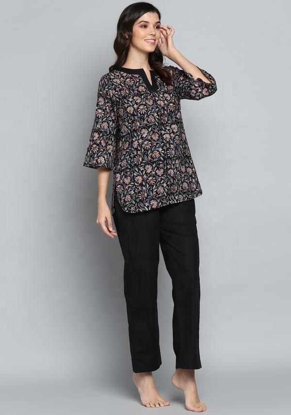 เสื้อนอนผ้าคอตตอนทอลายดอกไม้สีดำสนิมผ้านุ่มและเป็นมิตรกับสิ่งแวดล้อม