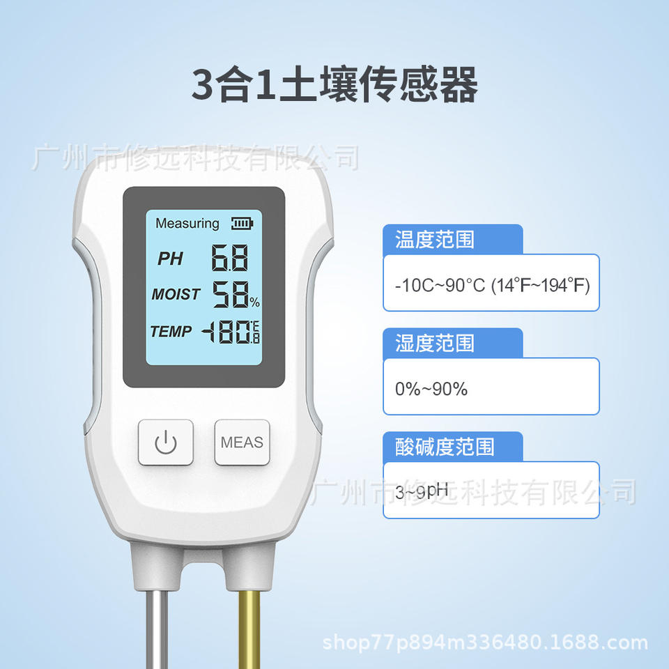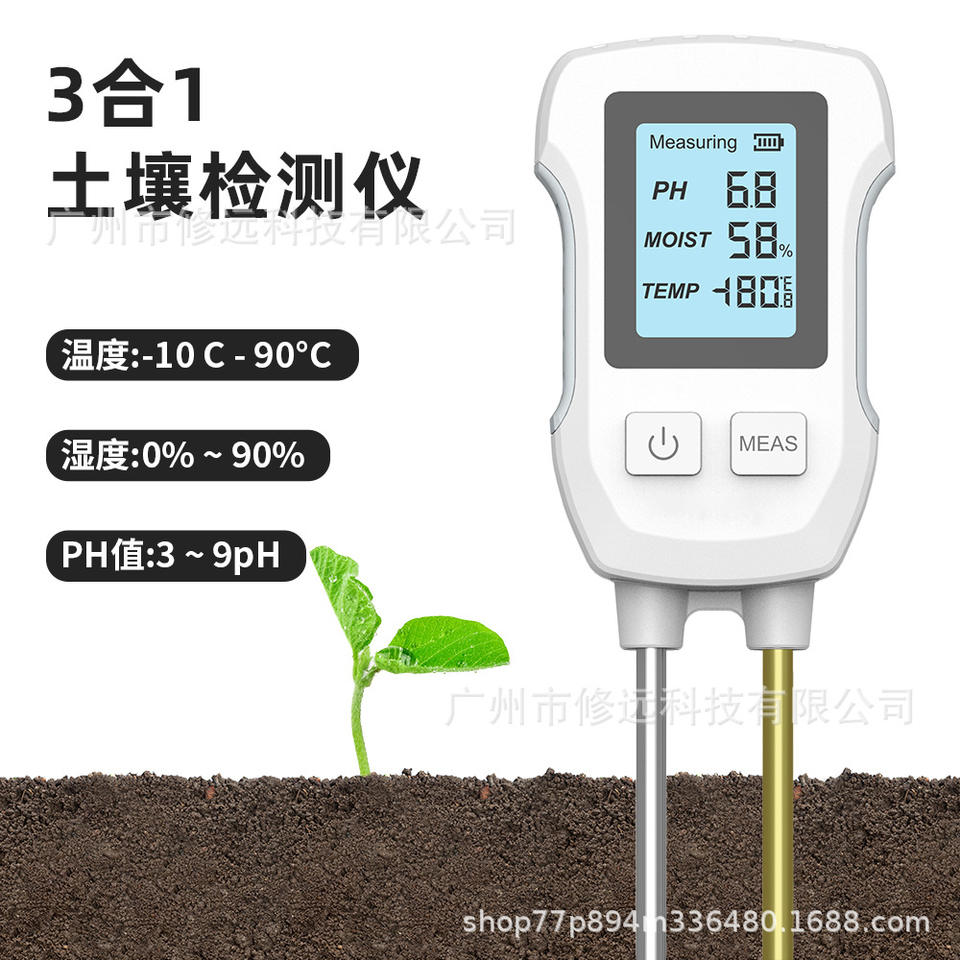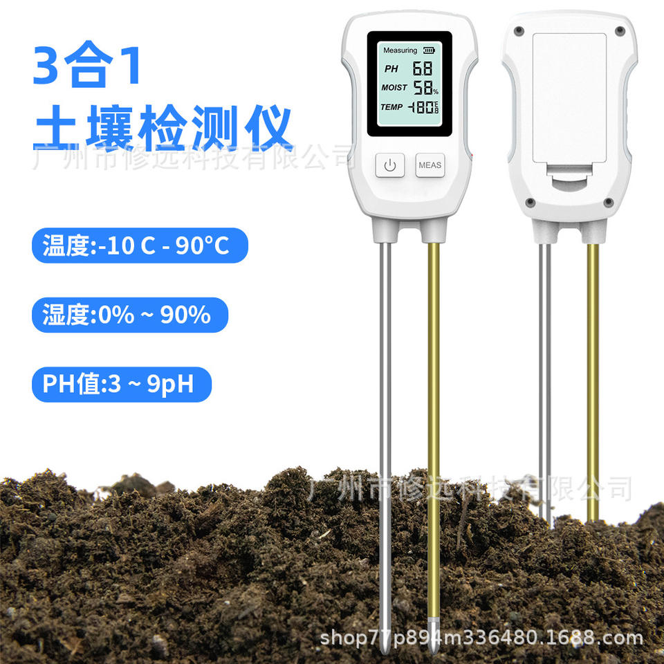 เครื่องทดสอบดินสามในหนึ่งเดียว วัดค่า pH ความชื้น อุณหภูมิ สำหรับการทดสอบพืชกระถางในสวน