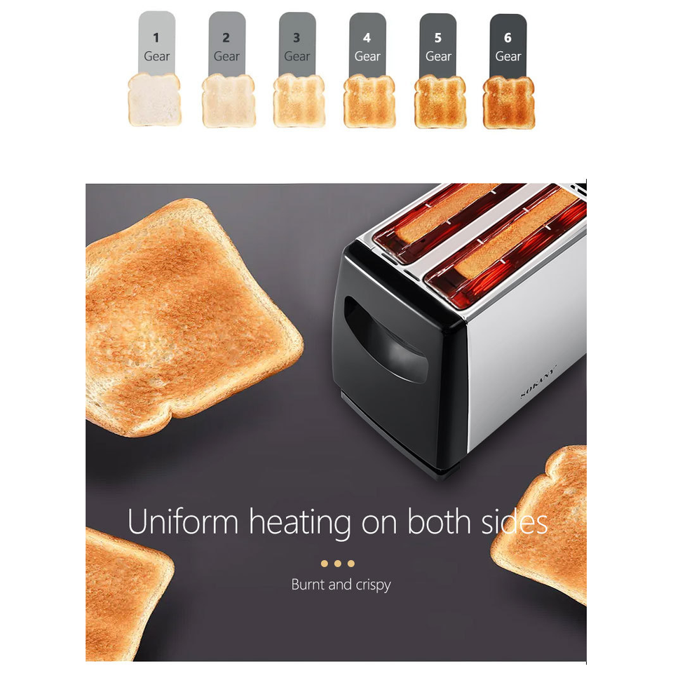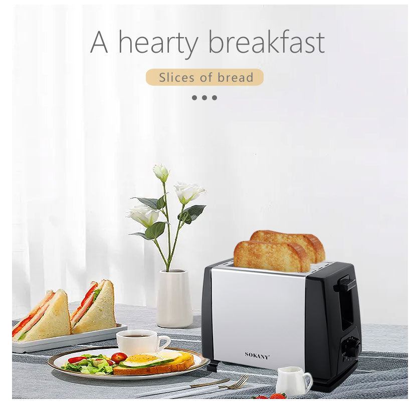 เครื่องปิ้งขนมปังอัตโนมัติ Sokany 700W แบบ 2 แผ่น โครงอะลูมิเนียม สำหรับใช้ในบ้านและโรงแรม