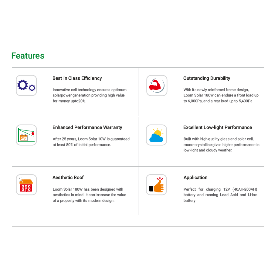 Quality:Highly efficient A Gade Mono Crystalline Cell Technology