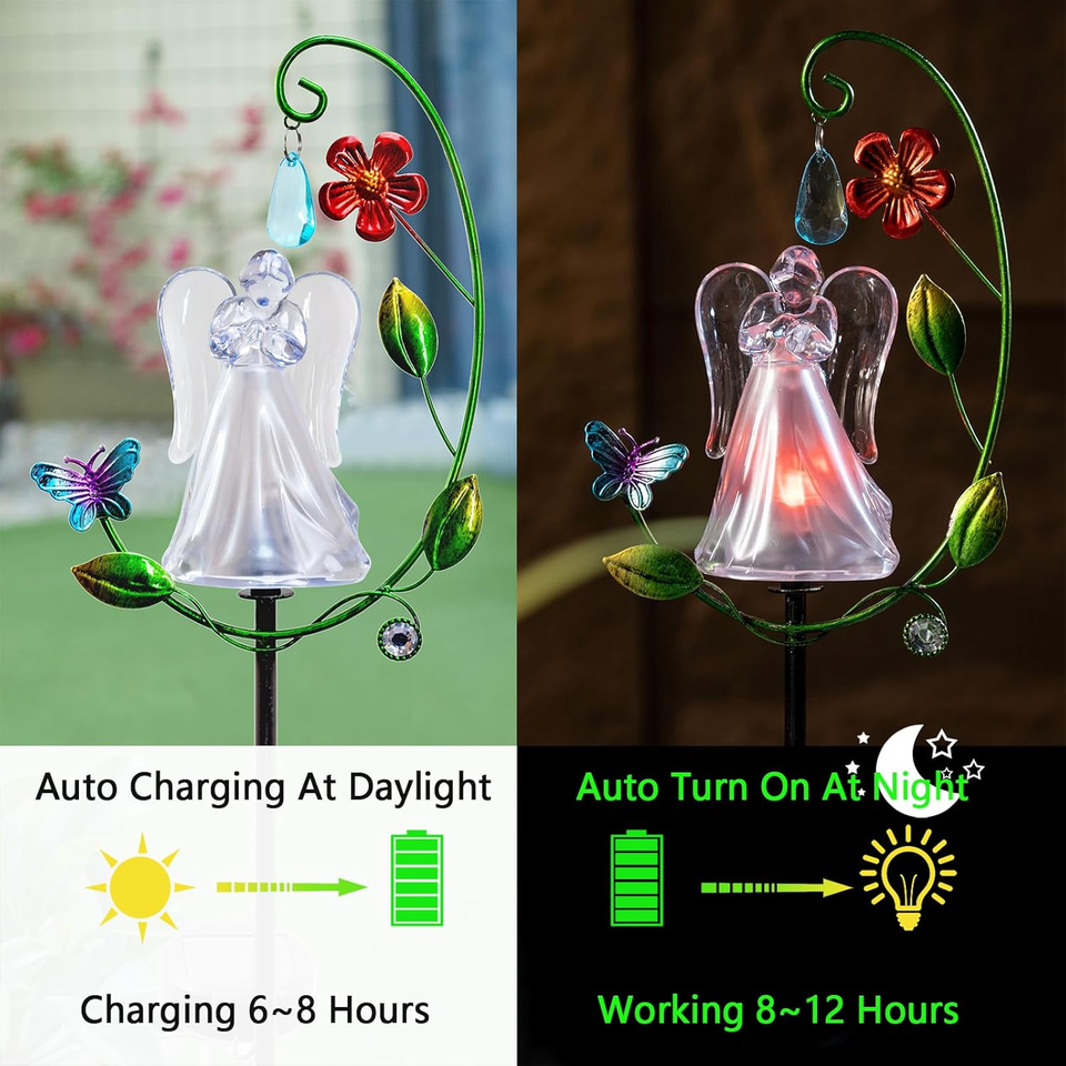 ไฟนางฟ้าพลังงานแสงอาทิตย์สำหรับตกแต่งสุสาน เปลี่ยนสีได้ ของขวัญอนุสรณ์ ไฟปักสนามกลางแจ้งสำหรับสวน ลานบ้าน กันน้ำ