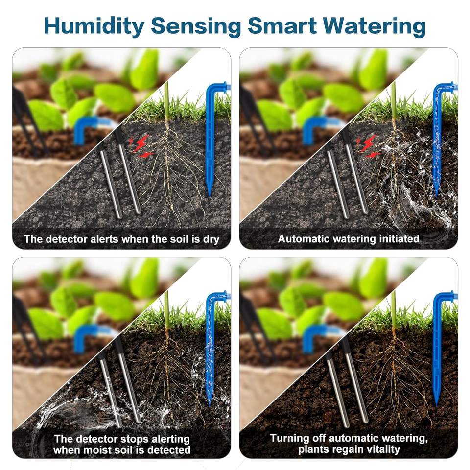 เครื่องรดน้ำต้นไม้อัตโนมัติพลังงานแสงอาทิตย์ในสวน/ในร่มชุดระบบตั้งเวลาหยดแบบตั้งโปรแกรมได้การตรวจจับความชื้นอัจฉริยะการรดน้ำชลประทาน