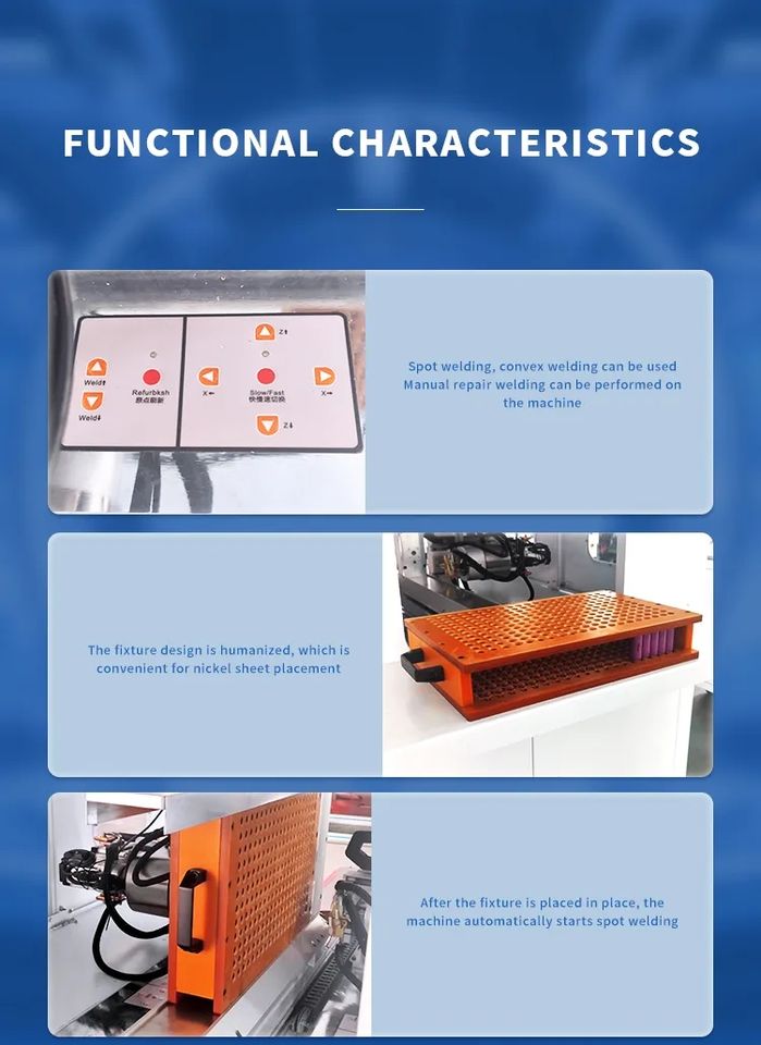 เครื่องเชื่อมแบตเตอรี่พลังงานแสงอาทิตย์แบบจุดเชื่อมอัตโนมัติสำหรับแบตเตอรี่ลิเธียมไอออน พลังงานใหม่ และชุดแบตเตอรี่รถยนต์ไฟฟ้า