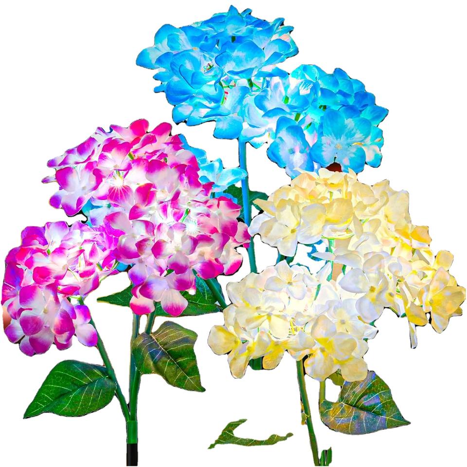 ไฟสวนไฮเดรนเยียสีสันสดใสพลังงานแสงอาทิตย์ไฟสวนกลางแจ้งกันน้ำรุ่นปรับปรุงสำหรับลานนอกบ้าน