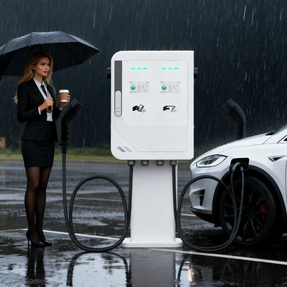 สถานีชาร์จรถยนต์ไฟฟ้าพลังงานแสงอาทิตย์แบบติดตั้งบนพื้น รองรับหัวชาร์จ CCS1 และ CCS2 ชาร์จเร็ว