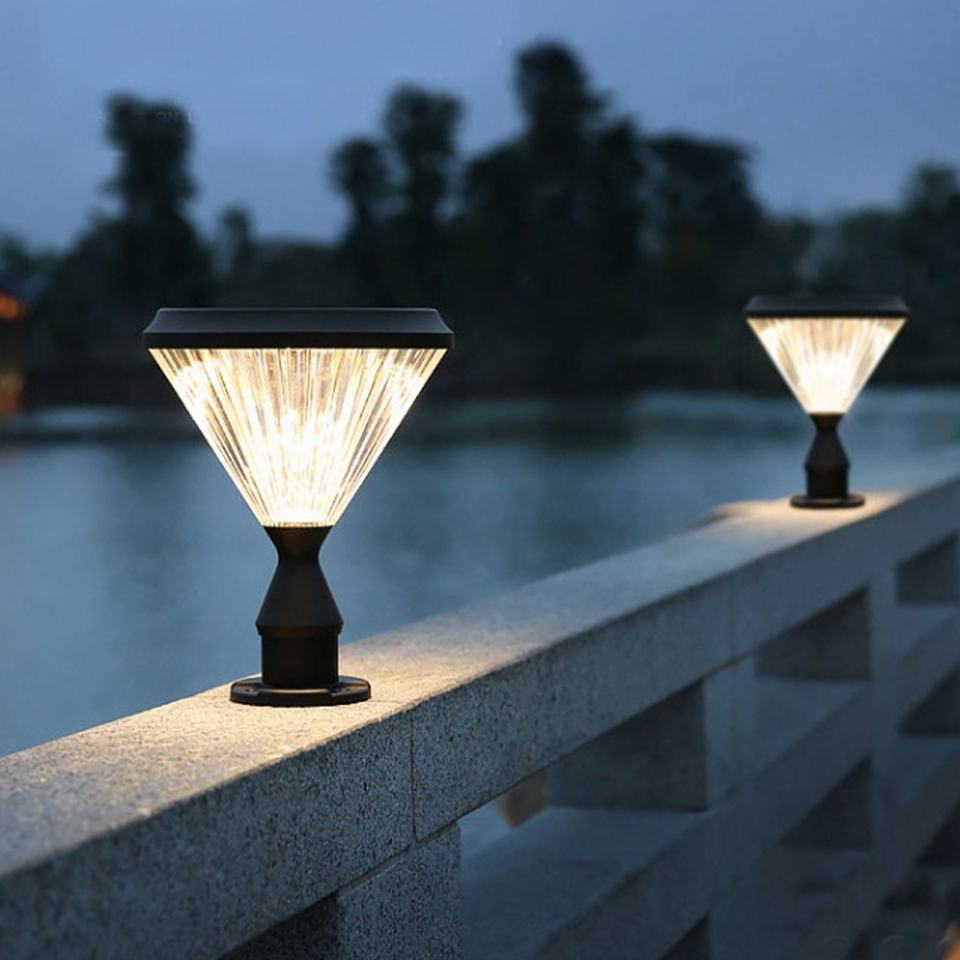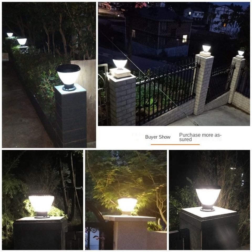เสาไฟ LED พลังงานแสงอาทิตย์ DC, เสาโคมไฟอลูมิเนียมหล่อ IP65กันน้ำมีเซ็นเซอร์ตรวจจับการเคลื่อนไหวกลางแจ้งสวนรั้ว