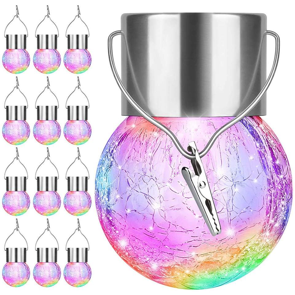 โคมไฟห้อยทรงกลมแก้วพลังงานแสงอาทิตย์ 4 ชิ้น ไฟ LED ลายแตก สำหรับตกแต่งสวนกลางแจ้ง ไฟประดับลานบ้าน