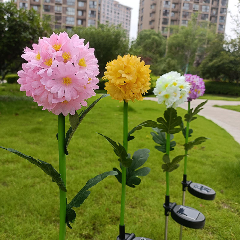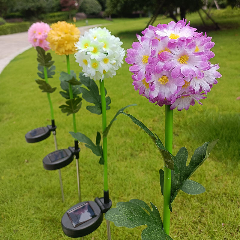 ไฟสวนดอกเบญจมาศ LED พลังงานแสงอาทิตย์ ไฟสนามหญ้ากันน้ำสำหรับตกแต่งกลางแจ้ง พร้อมแผงโซลาร์เซลล์สำหรับลานบ้าน