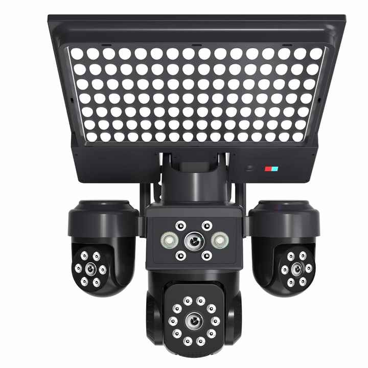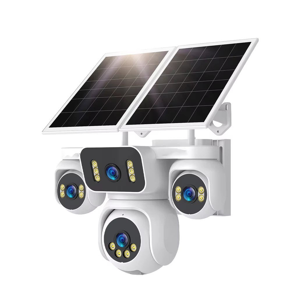 กล้องวงจรปิดพลังงานแสงอาทิตย์กลางแจ้ง 4K AI กล้องสี่เลนส์ สี่จอภาพ เชื่อมต่อเครือข่าย 4G สนทนาเสียงสองทาง ตัวเลือกแผงโซลาร์เซลล์ CMOS รองรับ Cloud และการ์ด SD