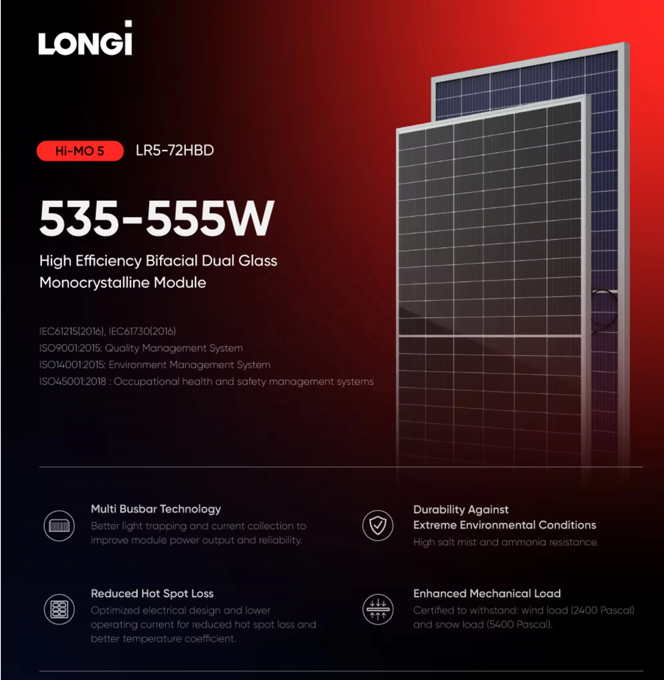สำหรับ longi Hi-Mo5 550วัตต์แผงโซลาร์เซลล์โมโนผลึก550วัตต์สำหรับ longi แผงโซลาร์เซลล์ที่มี PERC และครึ่งเซลล์