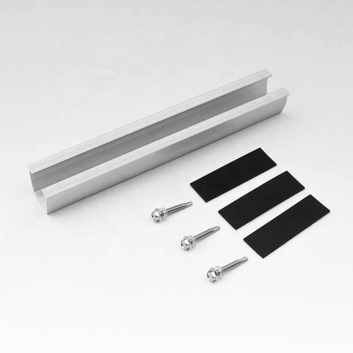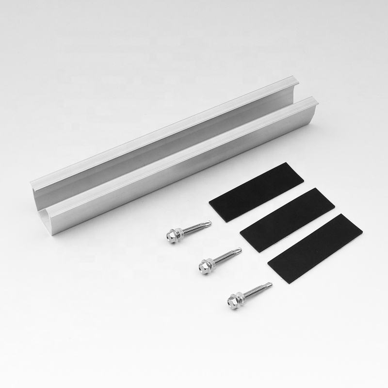 รางยึดแผงโซลาร์เซลล์อลูมิเนียมรางพลังงานแสงอาทิตย์ขนาดเล็กสำหรับระบบแร็คหลังคาโลหะพร้อมสกรูและระบบติดตั้งพลังงานแสงอาทิตย์ EPDM