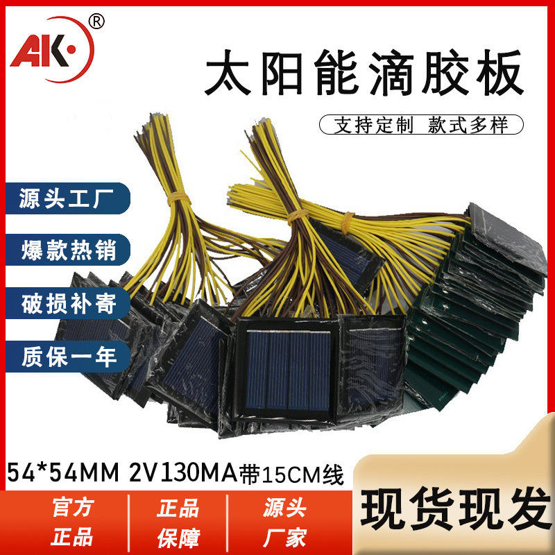 แผงโซลาร์เซลล์อีพ็อกซี่เรซิ่นบอร์ด 5454 2V 130MA โพลีคริสตัลไลน์โฟโตโวลตาอิกพร้อมสายผลิตพลังงานสำหรับเครื่องชาร์จพลังงานแสงอาทิตย์