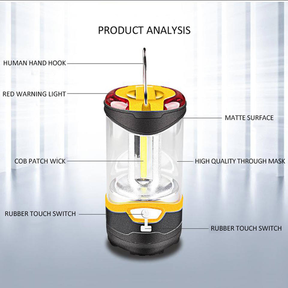 แผงเซลล์แสงอาทิตย์แบบชาร์จกลางแจ้งตั้งแคมป์นำโคมไฟที่มีเอาท์พุท USB นำแสง