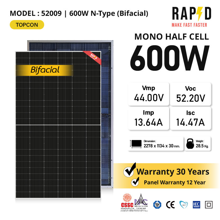 โซลาร์เซลล์600W N- Type Topcon โมโนครึ่งเซลล์ bifacialชื่อผลิตภัณฑ์