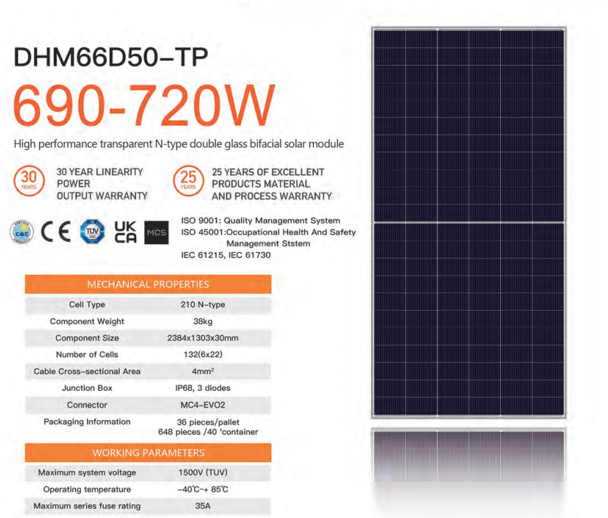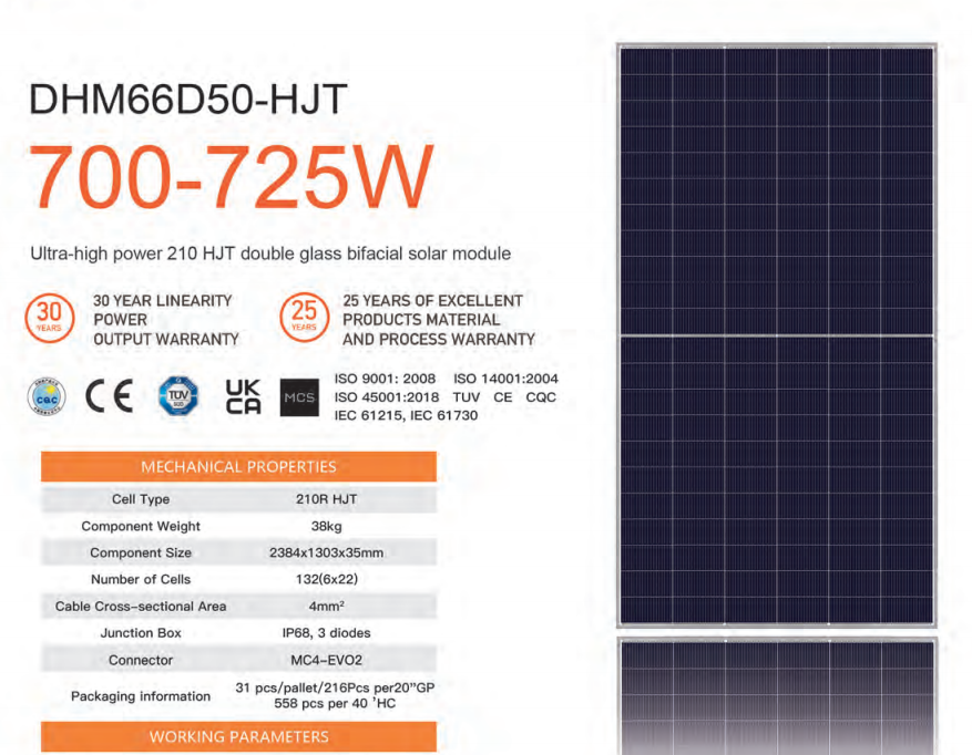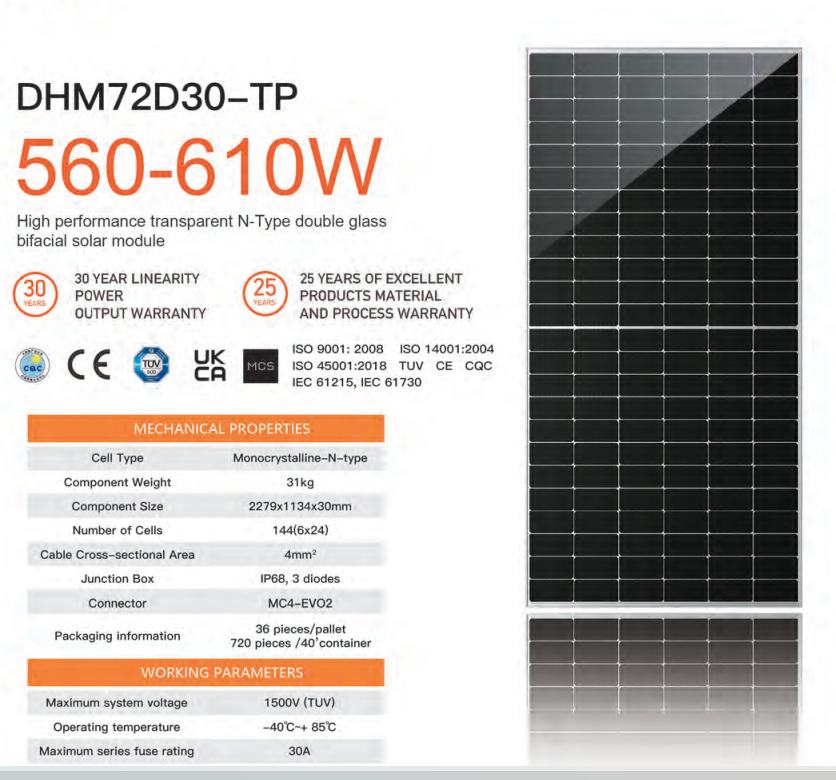 500-725Wประสิทธิภาพแผง