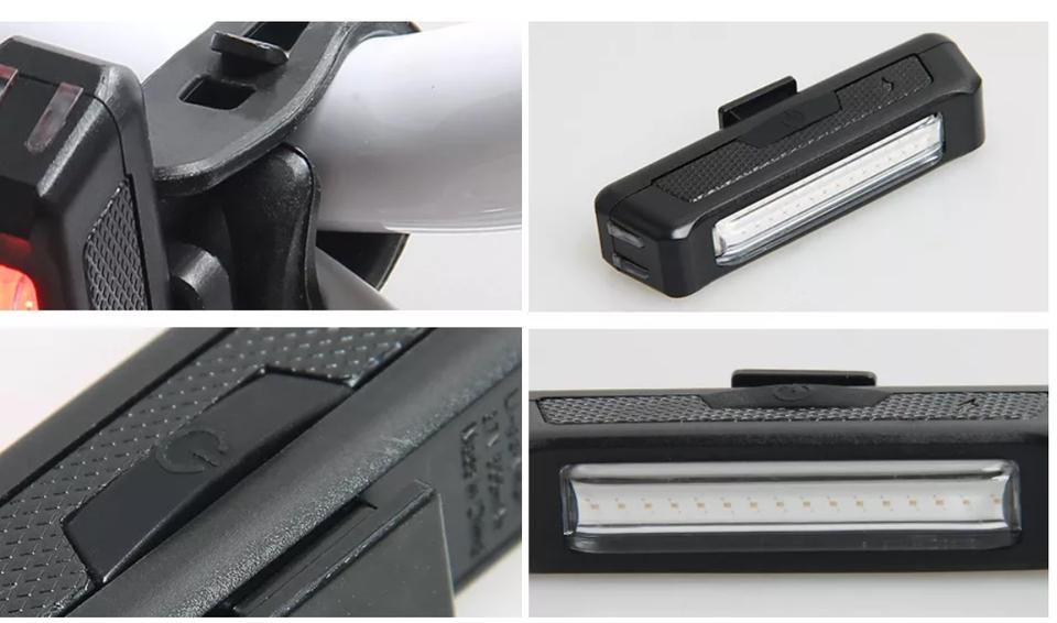 ชุดไฟจักรยานแบบพกพา LED COB พลังงานแสงอาทิตย์ 5 โหมด ไฟหน้า ไฟท้าย ไฟท้ายรถจักรยานยนต์ กันน้ำระดับ IPX5 โครง ABS สำหรับขี่กลางคืน