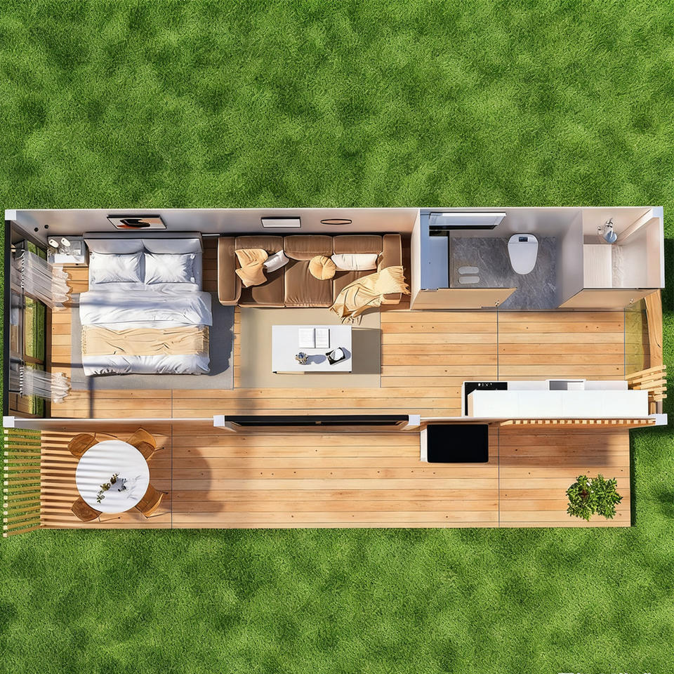 บ้านคอนเทนเนอร์พับได้สำเร็จรูปพลังงานแสงอาทิตย์ระดับไฮเอนด์ ขนาดกะทัดรัด ประหยัดพื้นที่ 30 ตร.ม.
