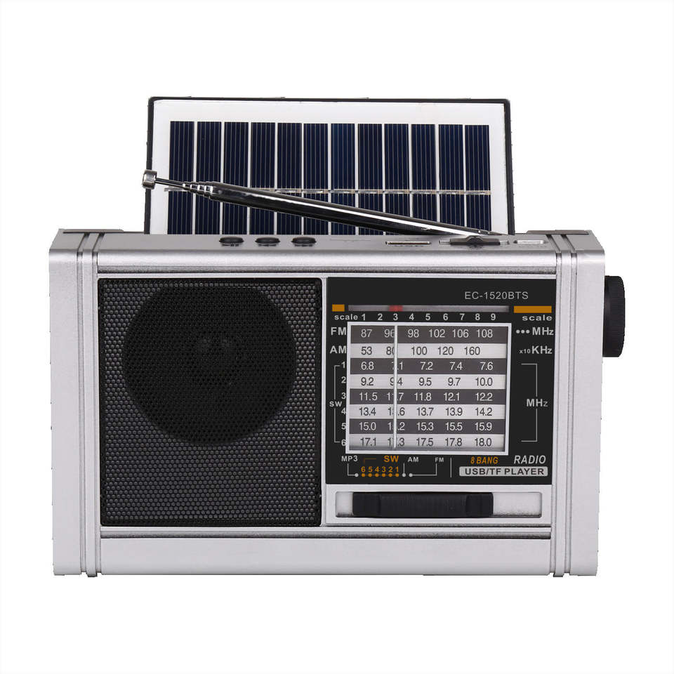 Solar-Powered Multi-Band FM/AM/SW Portable Radio, USB/TF MP3 Player with LED Light for Emergency & Outdoor