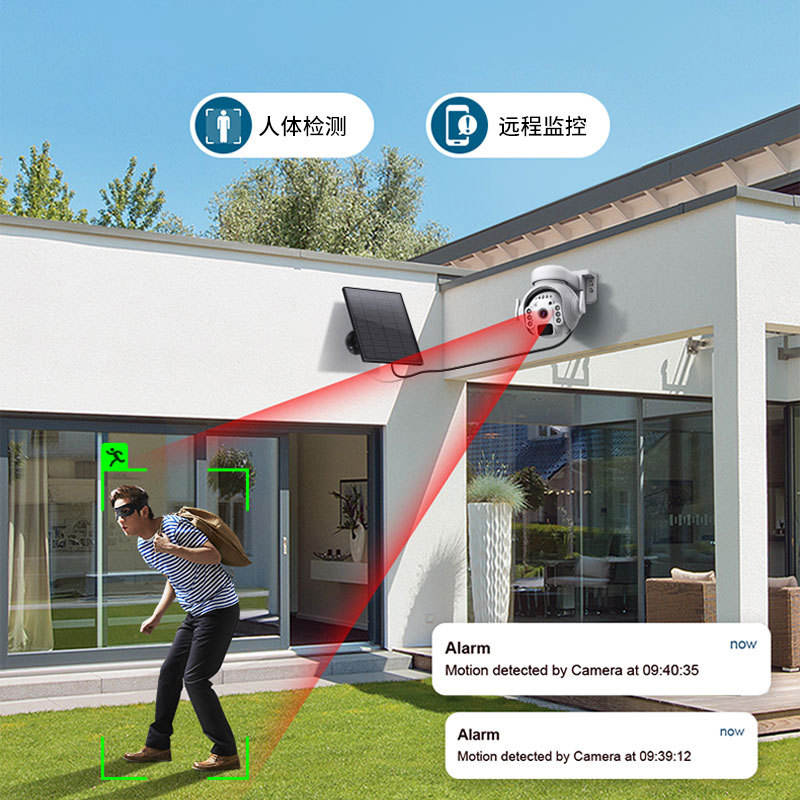 กล้องวงจรปิดพลังงานแสงอาทิตย์สำหรับภายนอกอาคาร ซูม 12 เท่า เลนส์คู่ Wi-Fi มองเห็นในเวลากลางคืนแบบ HD PTZ พร้อมระบบเตือนภัยและรองรับอินเตอร์คอม