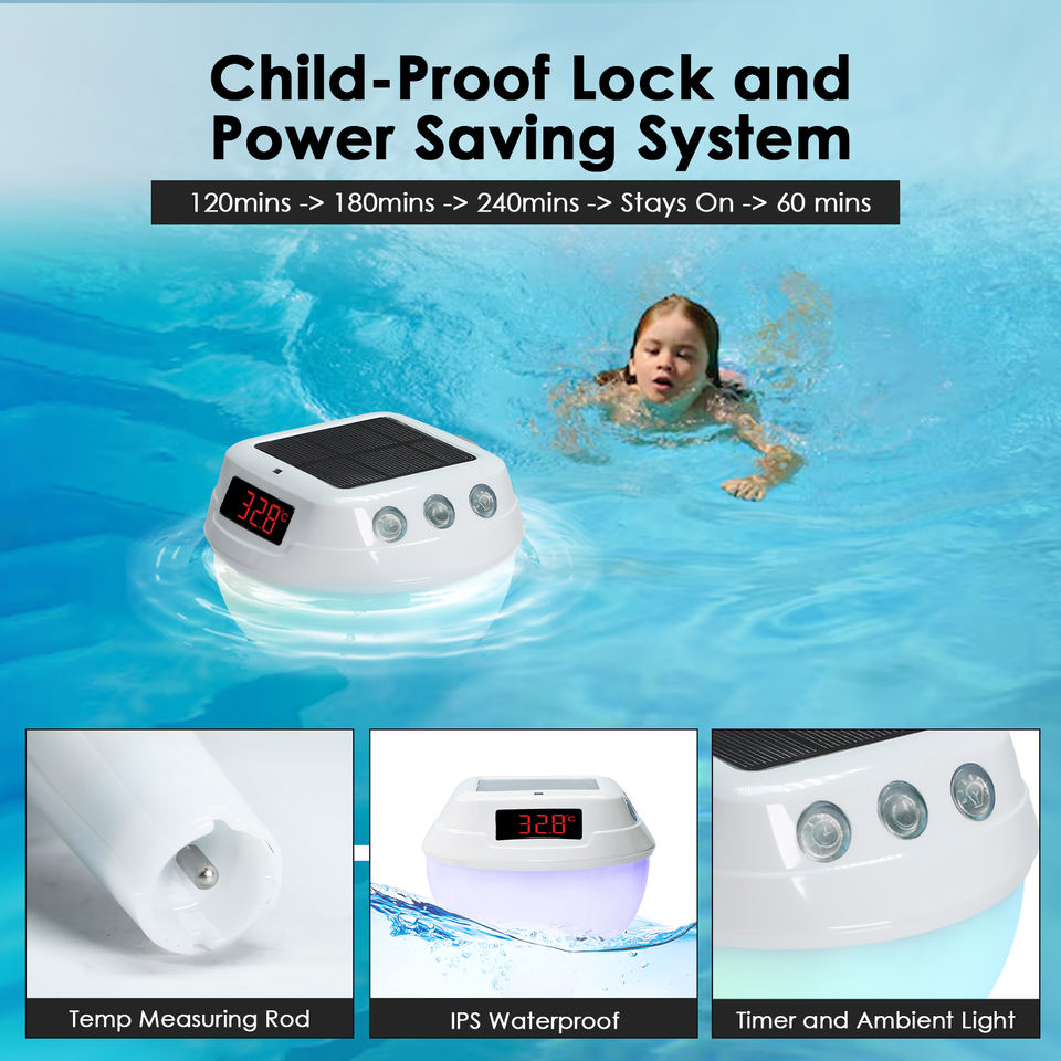 เครื่องวัดอุณหภูมิสระน้ำแบบจ่ายไฟ:พลังงานแสงอาทิตย์และแบตเตอรี่ลิเธียมแบบชาร์จไฟได้ขนาด 2200mAh ในตัว