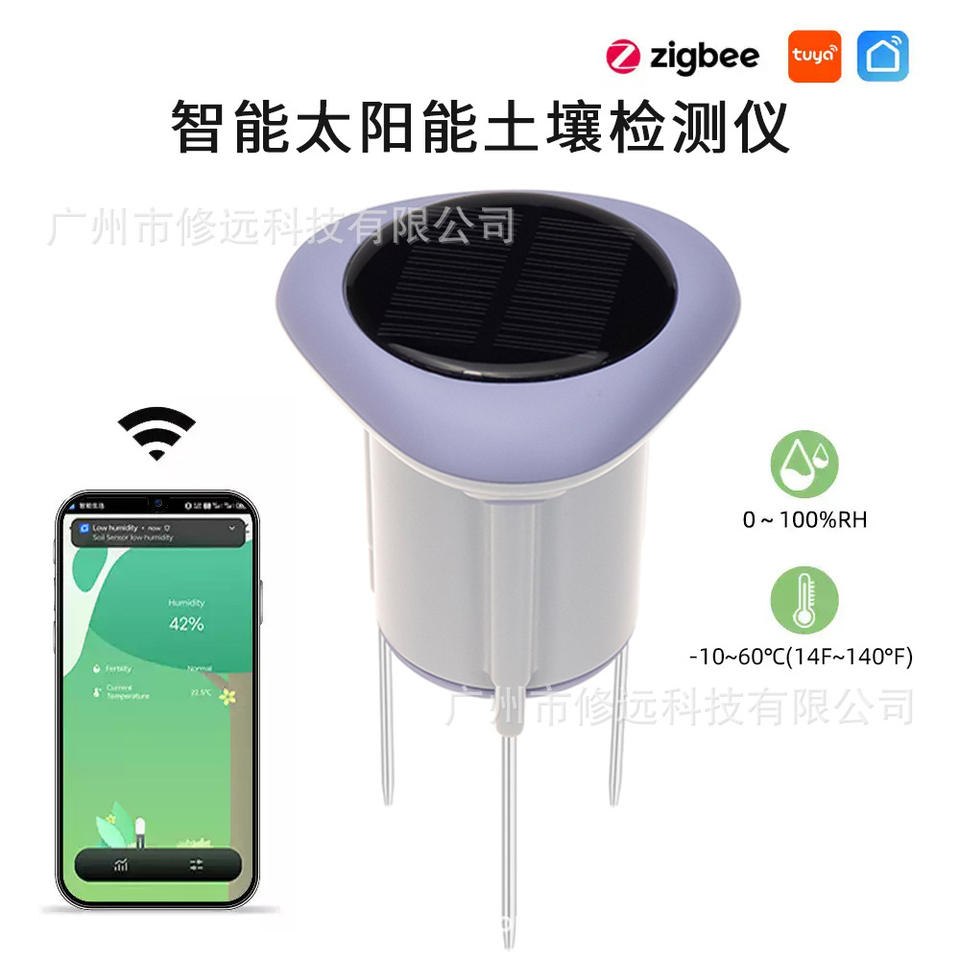 เซ็นเซอร์วัดดินแบบโซลาร์ วัดอุณหภูมิ ความชื้น ค่าการนำไฟฟ้า ZigBee สมาร์ทการ์เดน สำหรับตรวจสอบต้นไม้