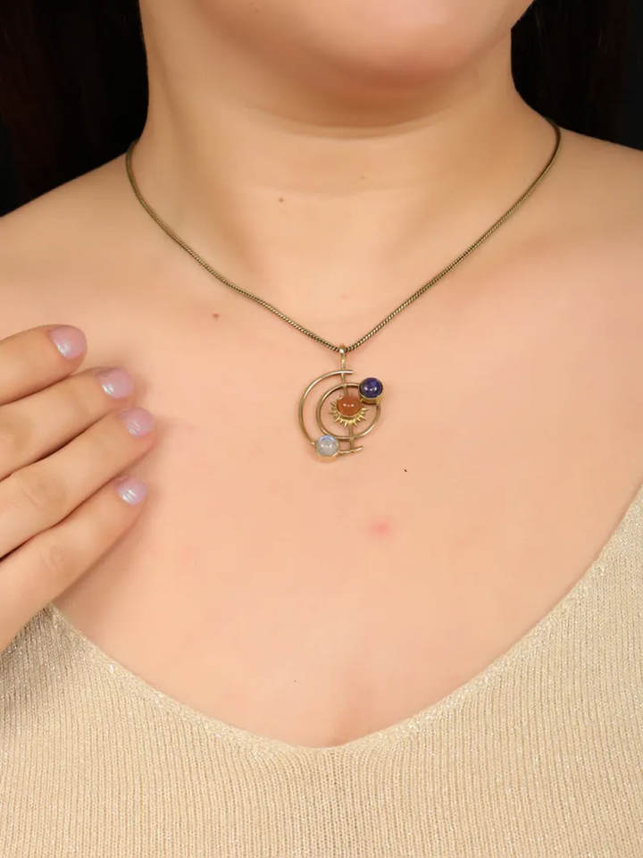 จี้รูปดาวเคราะห์ระบบสุริยะ สร้อยคอทังสเตนประดับอัญมณีหลากหลายดวง พระอาทิตย์ พระจันทร์ ดวงดาว งานแฮนด์เมดสุดหรู สำหรับงานแต่งงาน โหราศาสตร์