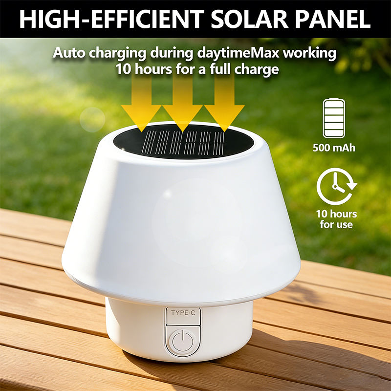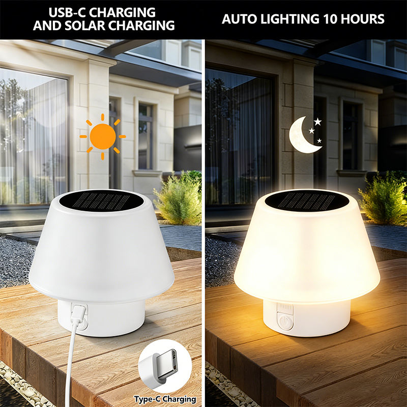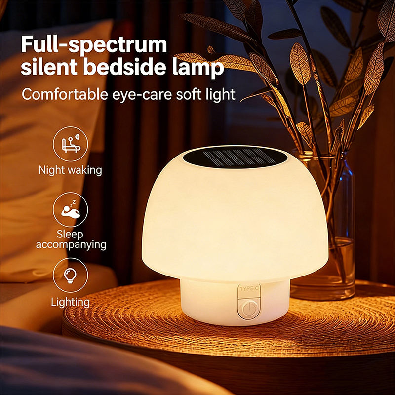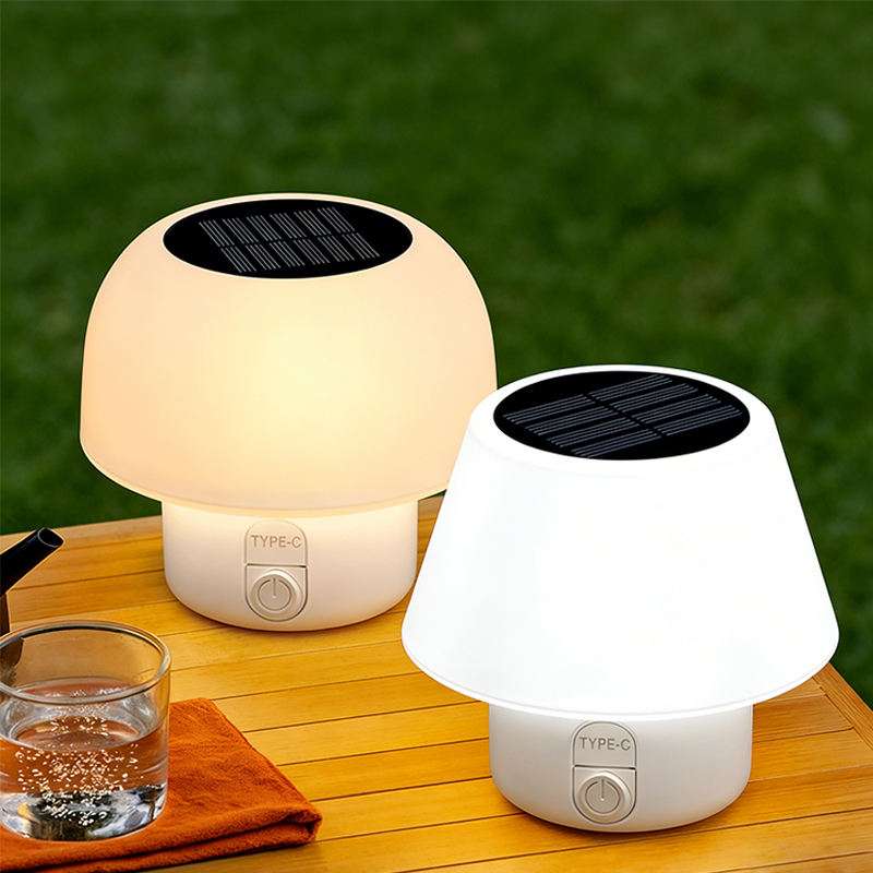 โคมไฟตั้งโต๊ะพลังงานแสงอาทิตย์กลางแจ้งในร่มแบบพกพาแคมป์ปิ้งโคมไฟรูปเห็ด LED 4 โหมด IP66 กันน้ำลานสวนห้องนอนลานร้านอาหาร