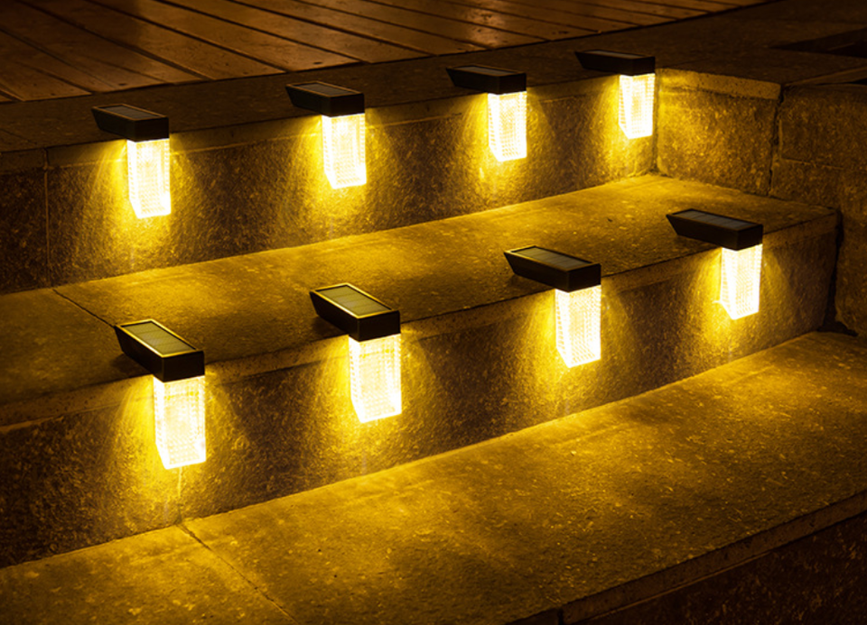 ไฟสวนพลังงานแสงอาทิตย์ติดผนังกลางแจ้งรั้วสนามโคมไฟบันไดบันไดกันน้ำเซ็นเซอร์ตรวจจับการเคลื่อนไหว RGB/IP65 LED สีขาว