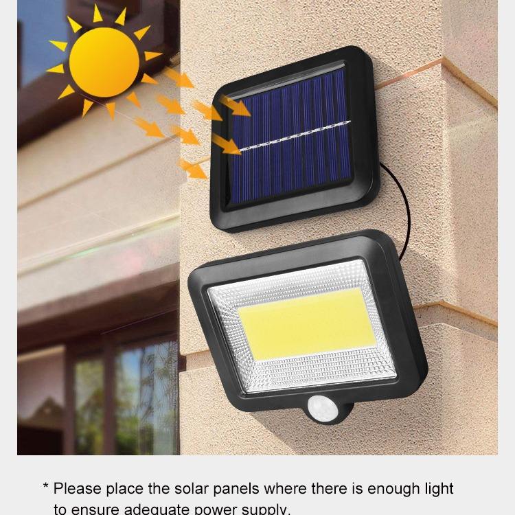 โคมไฟติดผนังพลังงานแสงอาทิตย์ 100/120 LED ระบบตรวจจับการเคลื่อนไหว กันน้ำ สำหรับสวน บ้านพักตากอากาศ ไฟถนน