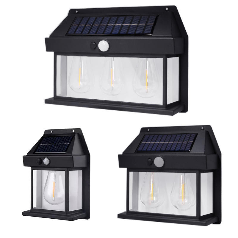 โคมไฟติดผนังพลังงานแสงอาทิตย์กลางแจ้ง LED หลอดไส้ทังสเตนกันน้ำเซ็นเซอร์สวนวิลล่าไฟกลางคืนมุมลำแสง 20 องศา