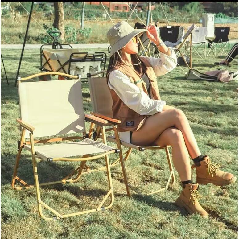 โซเล็กเก้าอี้พับกลางแจ้ง เก้าอี้สวนสไตล์ไม้อลูมิเนียมพร้อมพนักพิงและที่วางแขนสำหรับการตั้งแคมป์ตกปลาการร่างภาพ