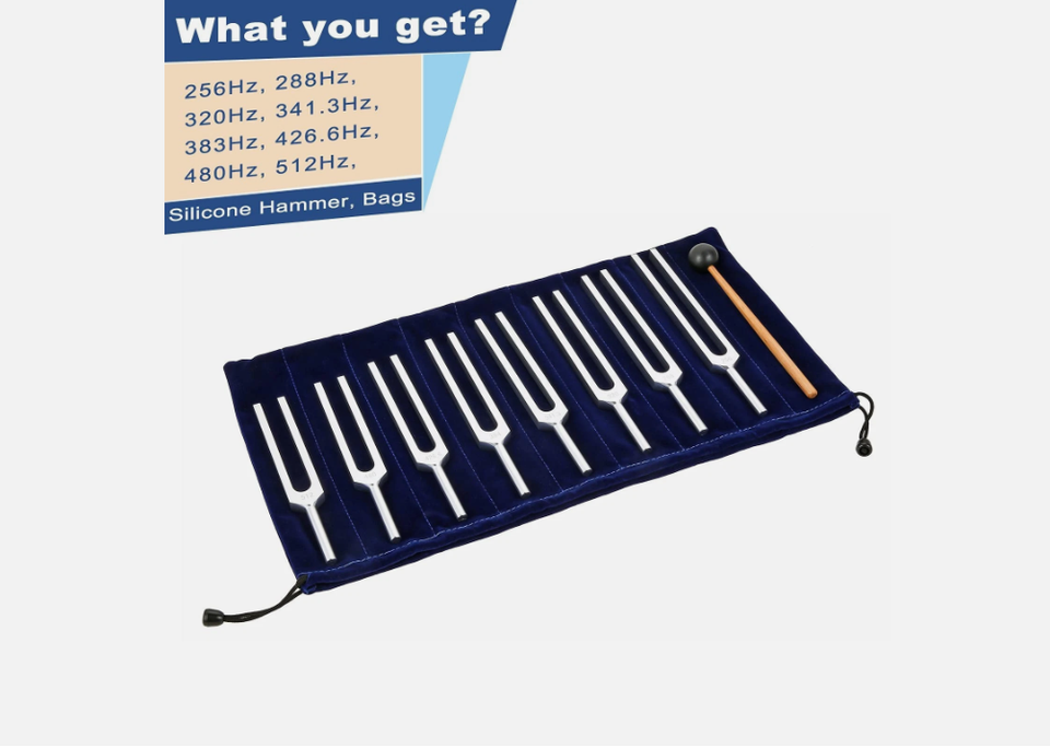 ชุดส้อมเสียงโซลเฟจโจสำหรับการบำบัด สมาธิ จักระ การบำบัดด้วยเสียง 8 ตัว
