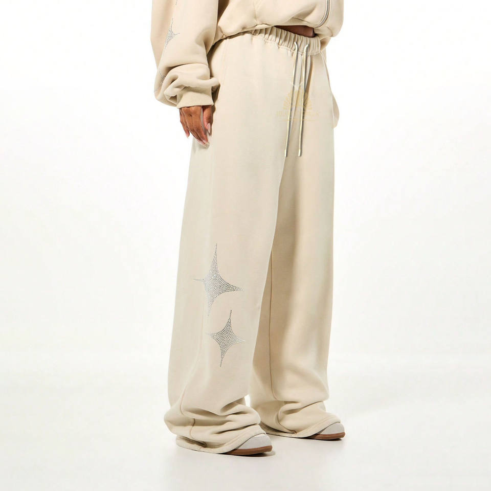 กางเกงวอร์มผ้าฝ้ายแท้ 100% ทรงหลวม เอวกลาง ขาบาน แต่งโลโก้ด้วยคริสตัล สำหรับสาวๆ