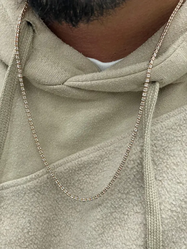สร้อยคอโซ่ประดับเพชรแท้10K ชุบทองคำขาวแท้สำหรับบุรุษเครื่องประดับแฟชั่น