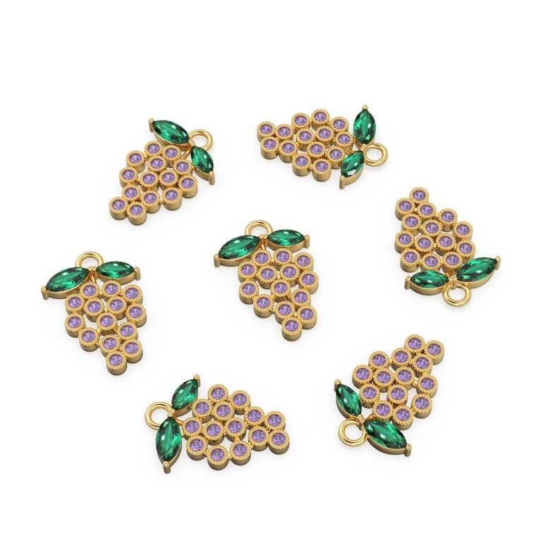 Solid Gold Amethyst and Emerald Grape Pendant 14K Gold Necklace