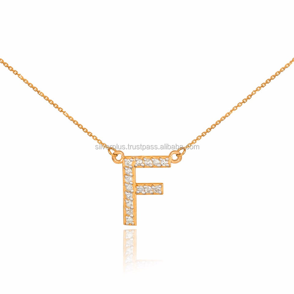ทึบ14K สีโรสโกลด์เริ่มต้น "F" ตัวอักษรตัวอักษรของแท้ปูเพชรแท้จี้พระปรมาภิไธยย่อสองชั้นจี้สร้อยคอผู้จัดจำหน่าย