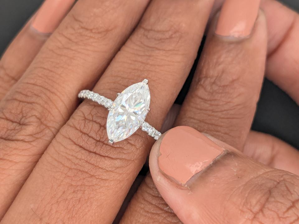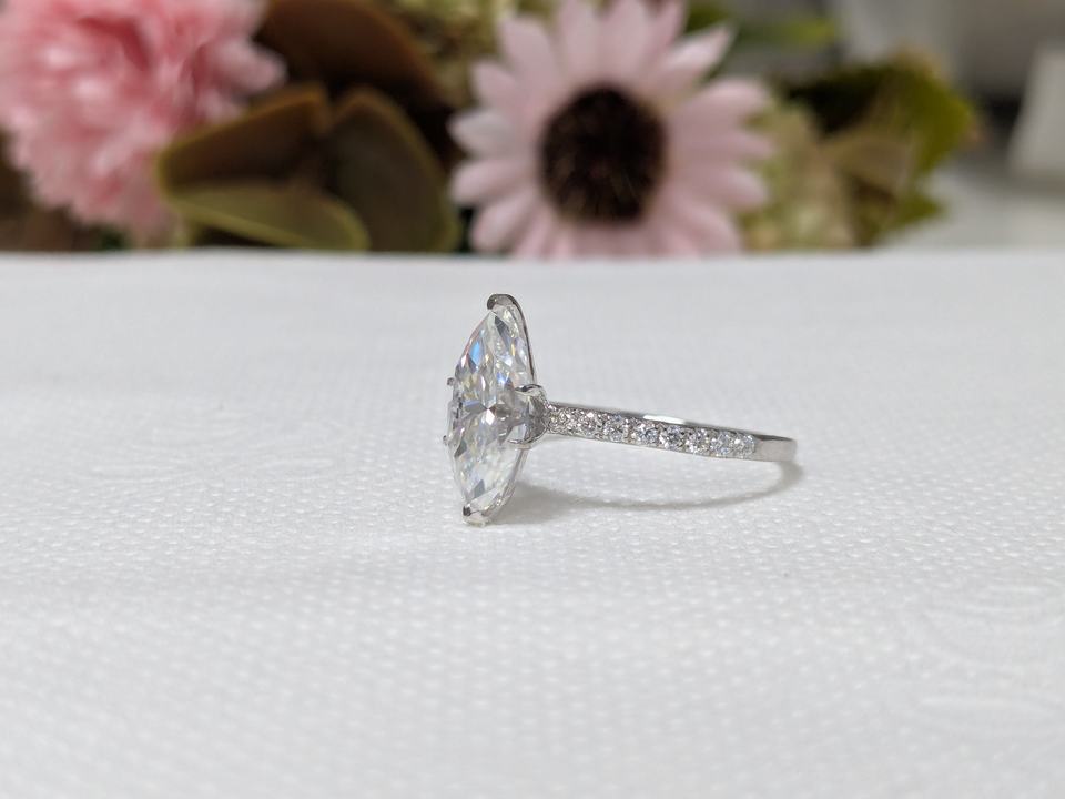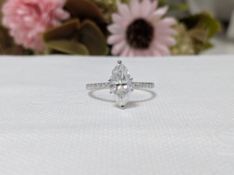 แหวนหมั้นเพชรทรงมาร์คีส์ 1.75 กะรัต เพชรเลี้ยงในห้องปฏิบัติการ รับรองโดย IGI ทองคำขาว/ทองคำเหลือง 14K แท้ ดีไซน์หรูหรา ของขวัญวาเลนไทน์