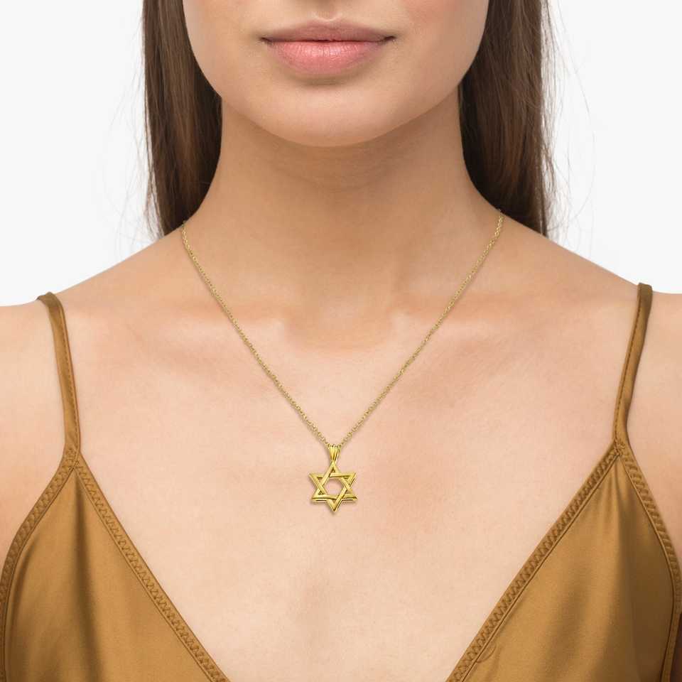จี้ดาวหกแฉกทองคำแท้ 14K แบบคลาสสิกสำหรับชาวยิว ไม่มีสร้อยคอ จี้และเครื่องประดับสำหรับผู้หญิง