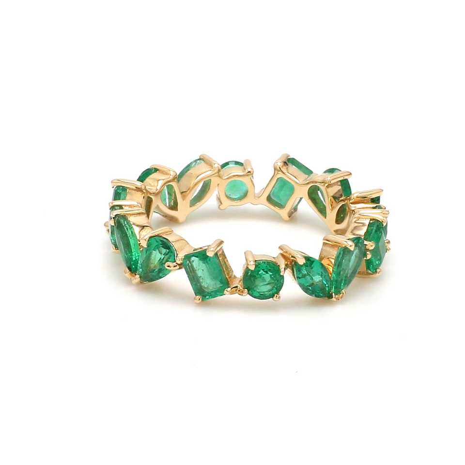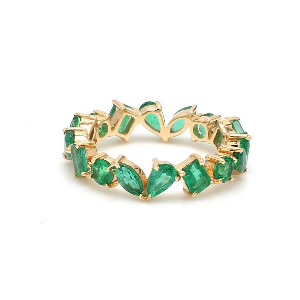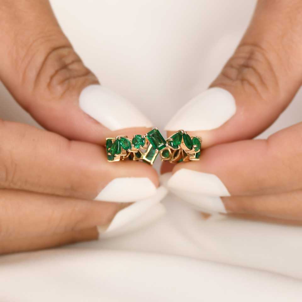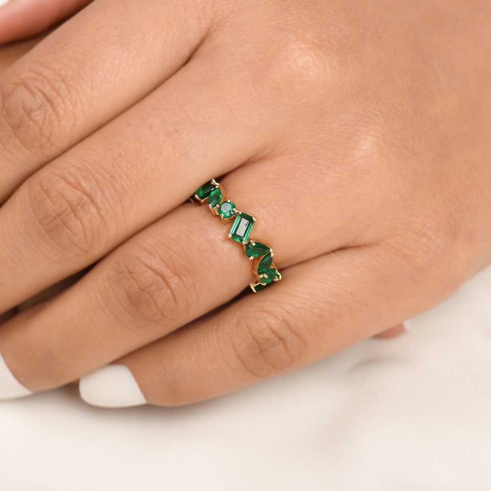 แหวนอัญมณีมรกตธรรมชาติสีทองเหลือง14K หลายรูปทรงสำหรับงานแต่งงานแหวนหมั้นสำหรับผู้หญิงขายส่ง