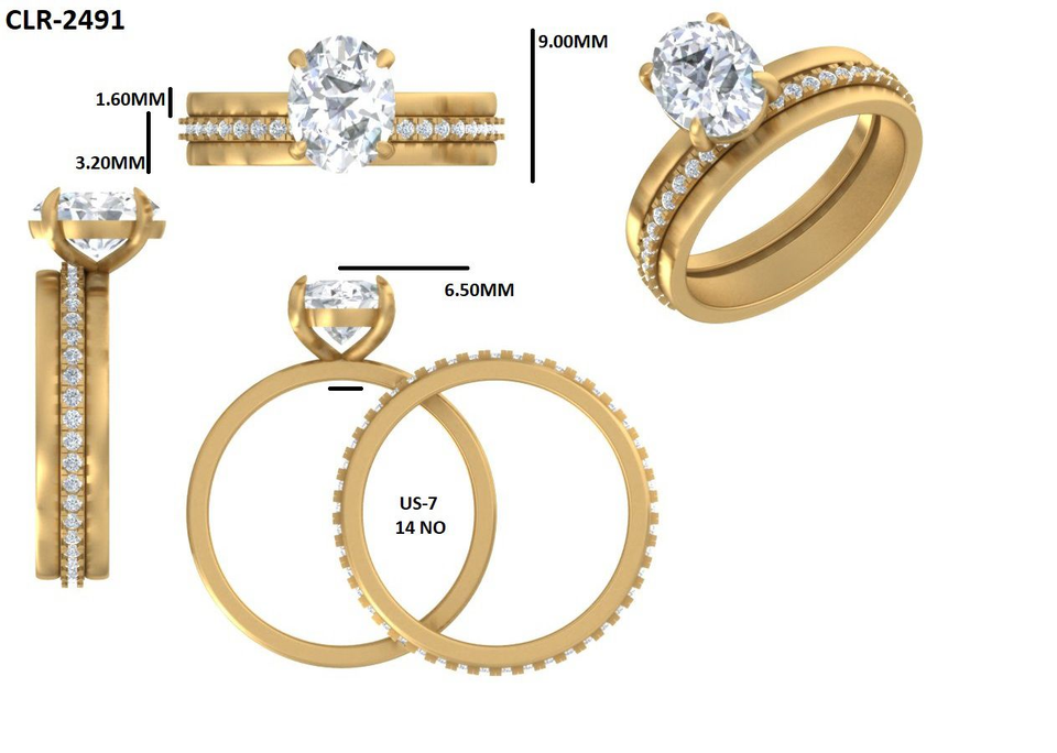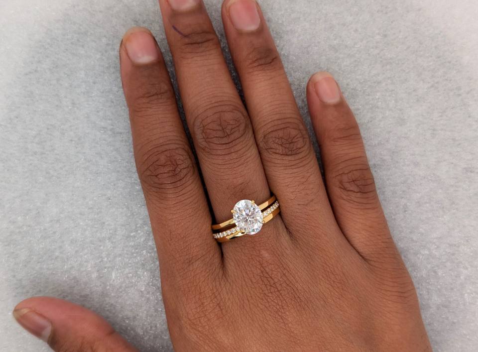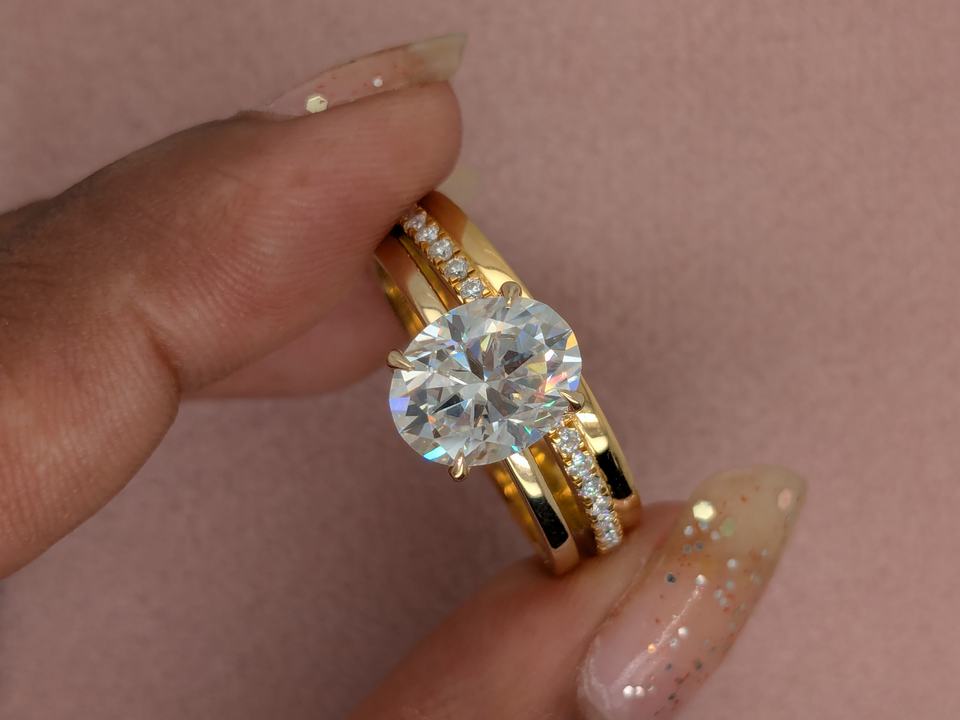 แหวนทองคำแท้ 14K สีเหลือง ประดับเพชรทรงรี 2 กะรัต เพาะเลี้ยงในห้องปฏิบัติการ ชุดแหวนหมั้นและแหวนแต่งงานสำหรับผู้หญิง