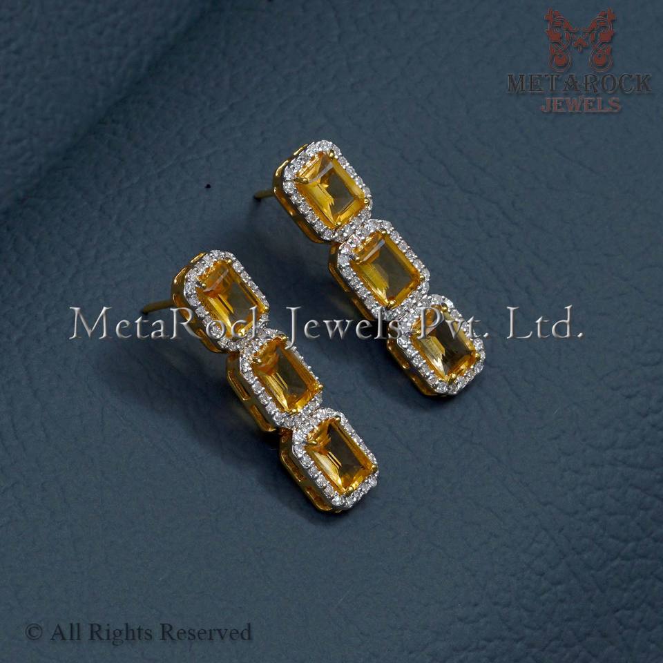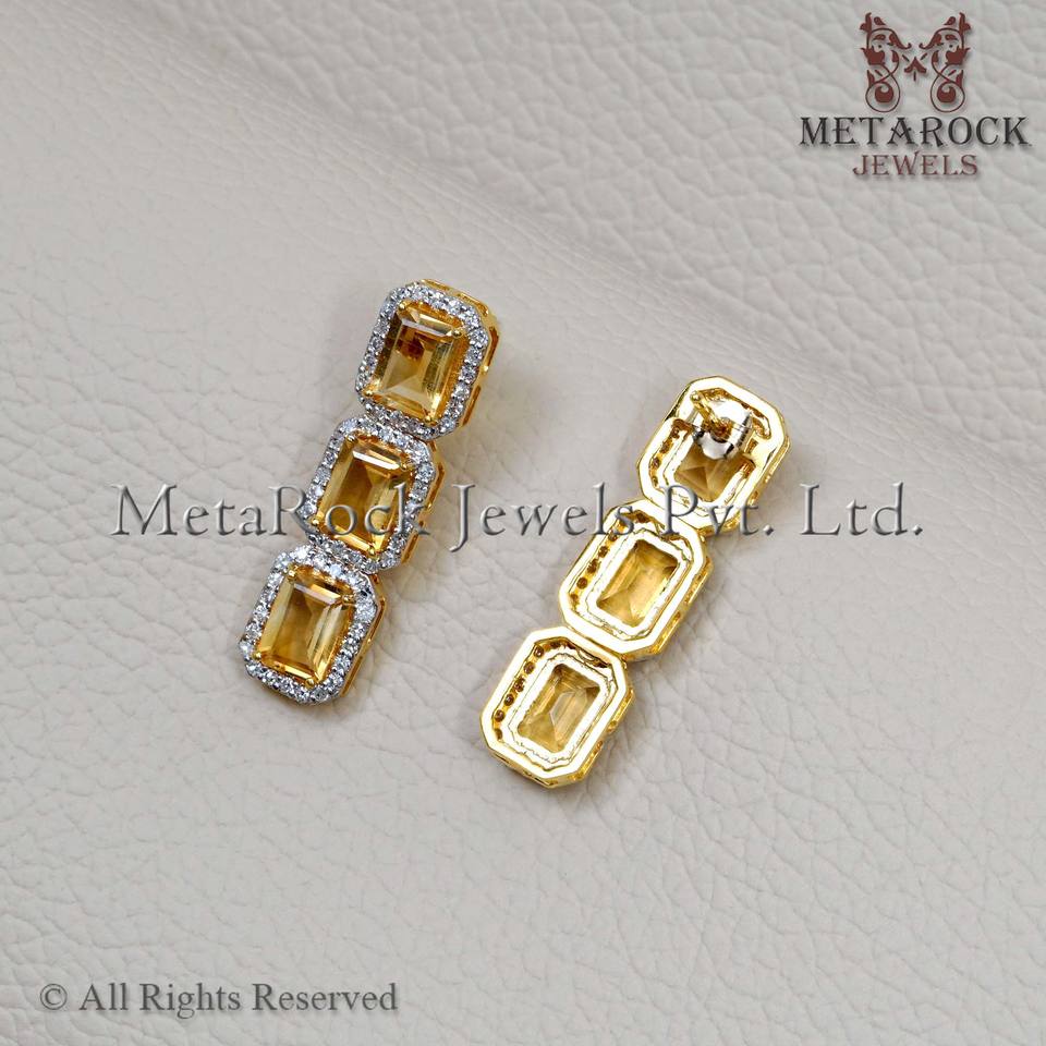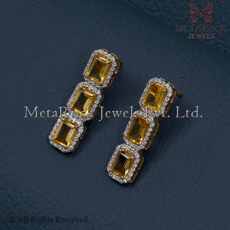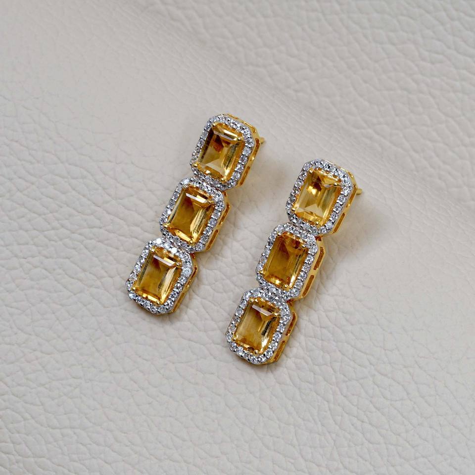 ต่างหูทองคำ14K ที่เป็นของแข็งประดับเพชรดีไซน์ใหม่เครื่องประดับอัญมณีซิทรินสำหรับผู้หญิง
