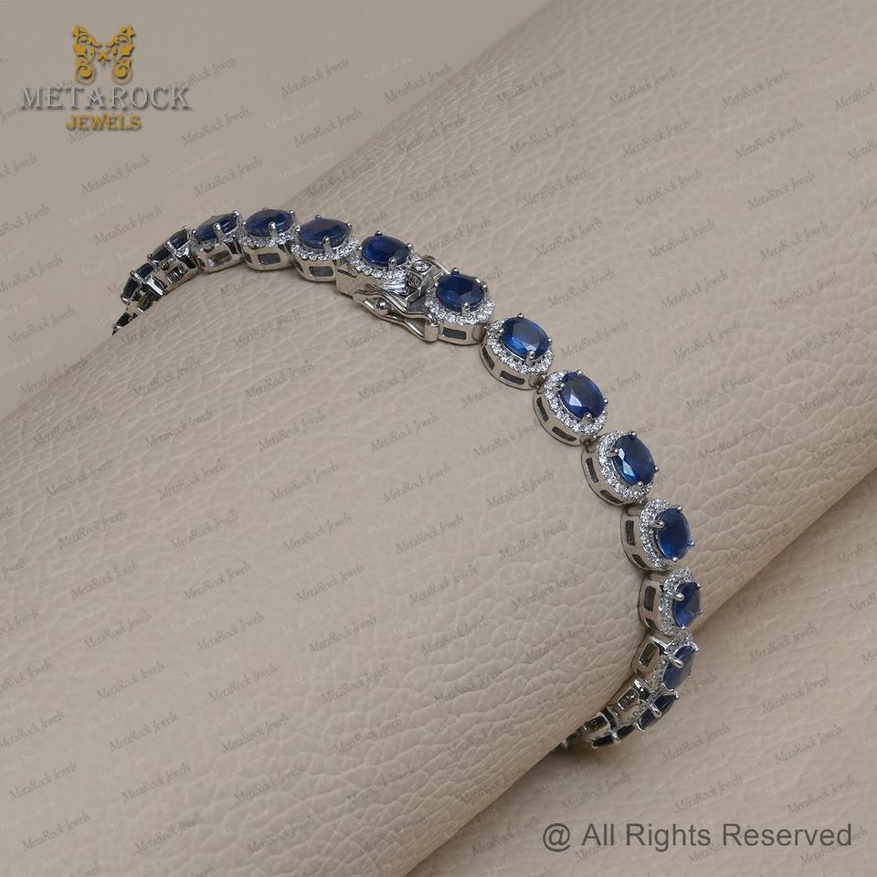 ชื่อสร้อยข้อมือ:สร้อยข้อมือเพชรไพลินสีน้ำเงิน