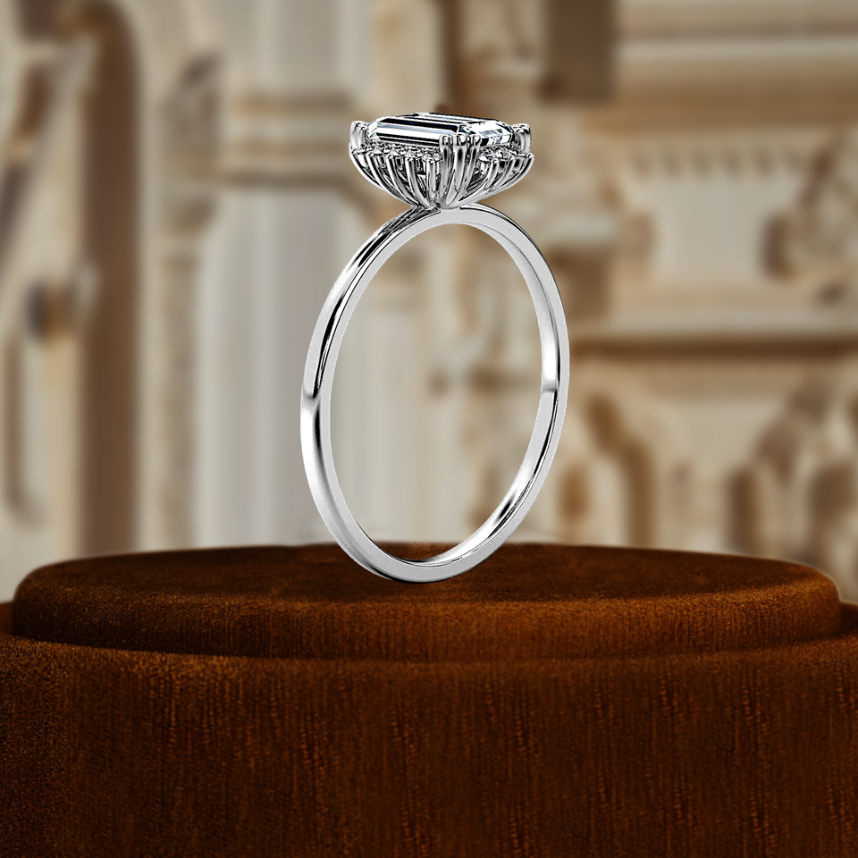 แหวนเพชรทรงกลมทองคำขาว 14k ประดับเพชรแบบเฮโลคลัสเตอร์, แหวนหมั้นเพชรเพาะเลี้ยง 1 กะรัต, แหวนแต่งงานเพชรเฮโลพร้อมใบรับรอง IGI