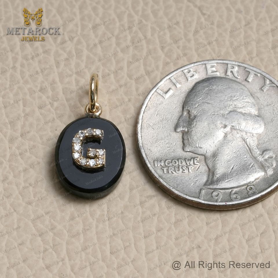 จี้ทองคำ14K รูปตัว G ทำด้วยมือสีดำอัญมณีโอนิกซ์จี้ขนาดเล็กของขวัญสำหรับทุกเพศ